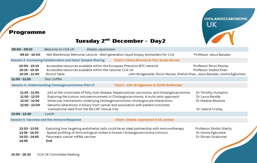 The programme will feature national and international speakers, cutting-edge research and dedicated sessions on the molecular biology of cholangiocarcinoma, the role of the tumour microenvironment, translation research, and the sharing of samples and resources.